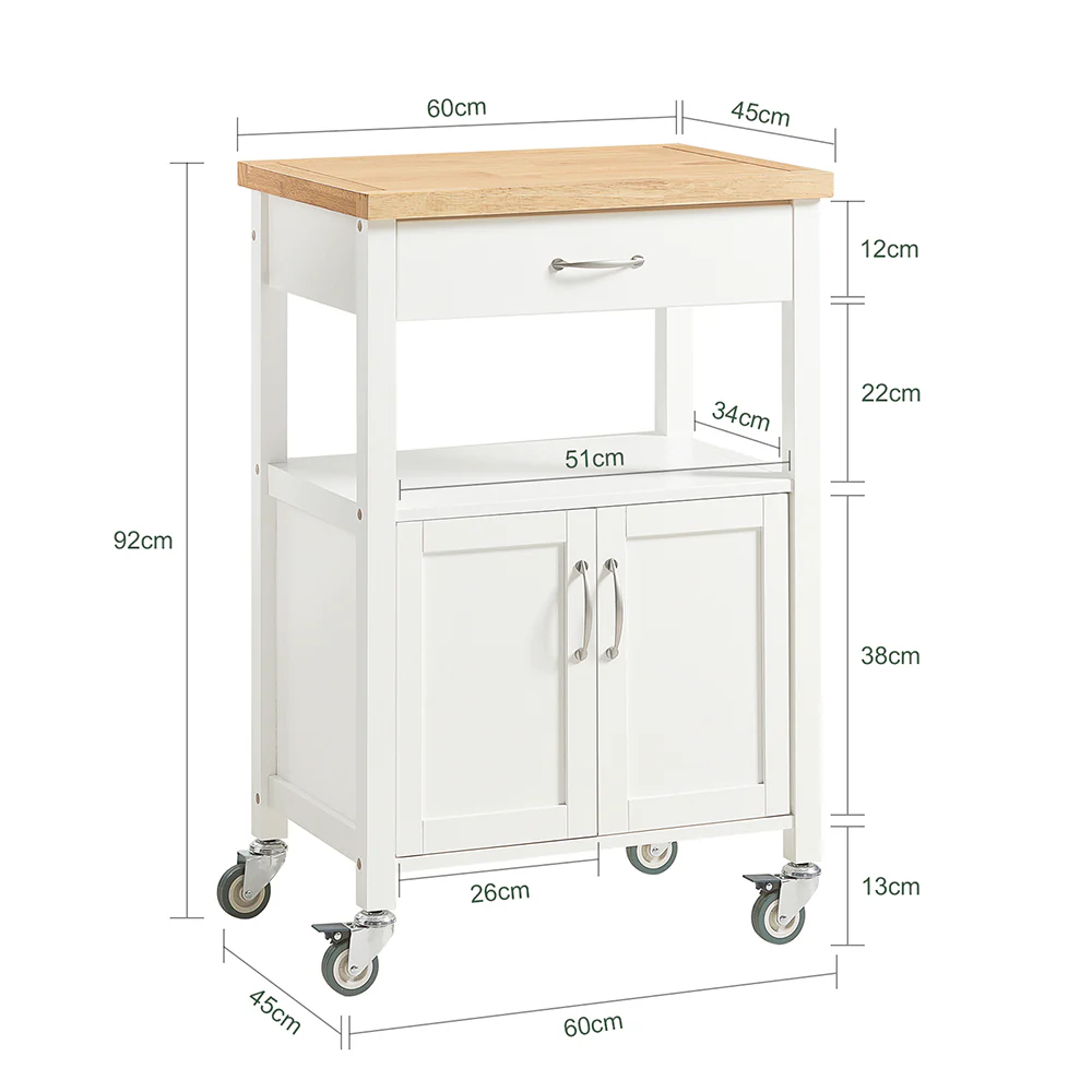 - Whole Trolley Dimensions: W60 x D44.5 x H90cm.