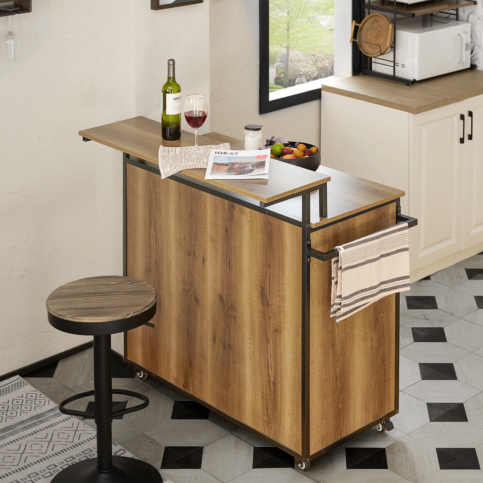 SoBuy KNL02-PF, Design Bar Cabinet on Wheels, Kitchen Storage Trolley Kitchen Island Kitchen Cabinet Sideboard Vintage, Brown,black