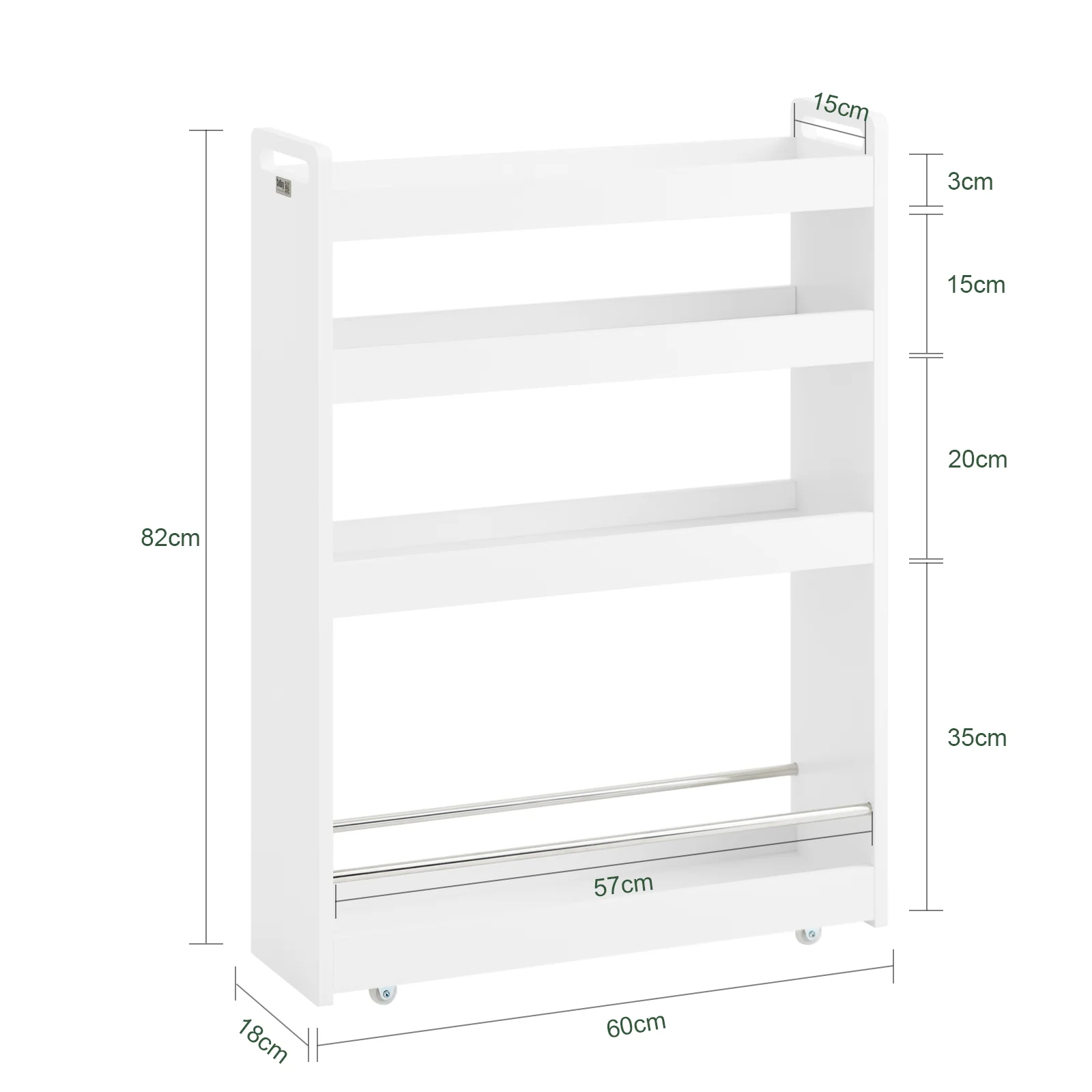Versatile and practical. This mobile storage rack shelf is suitable for a variety of locations, like kitchen, bathroom and living room.