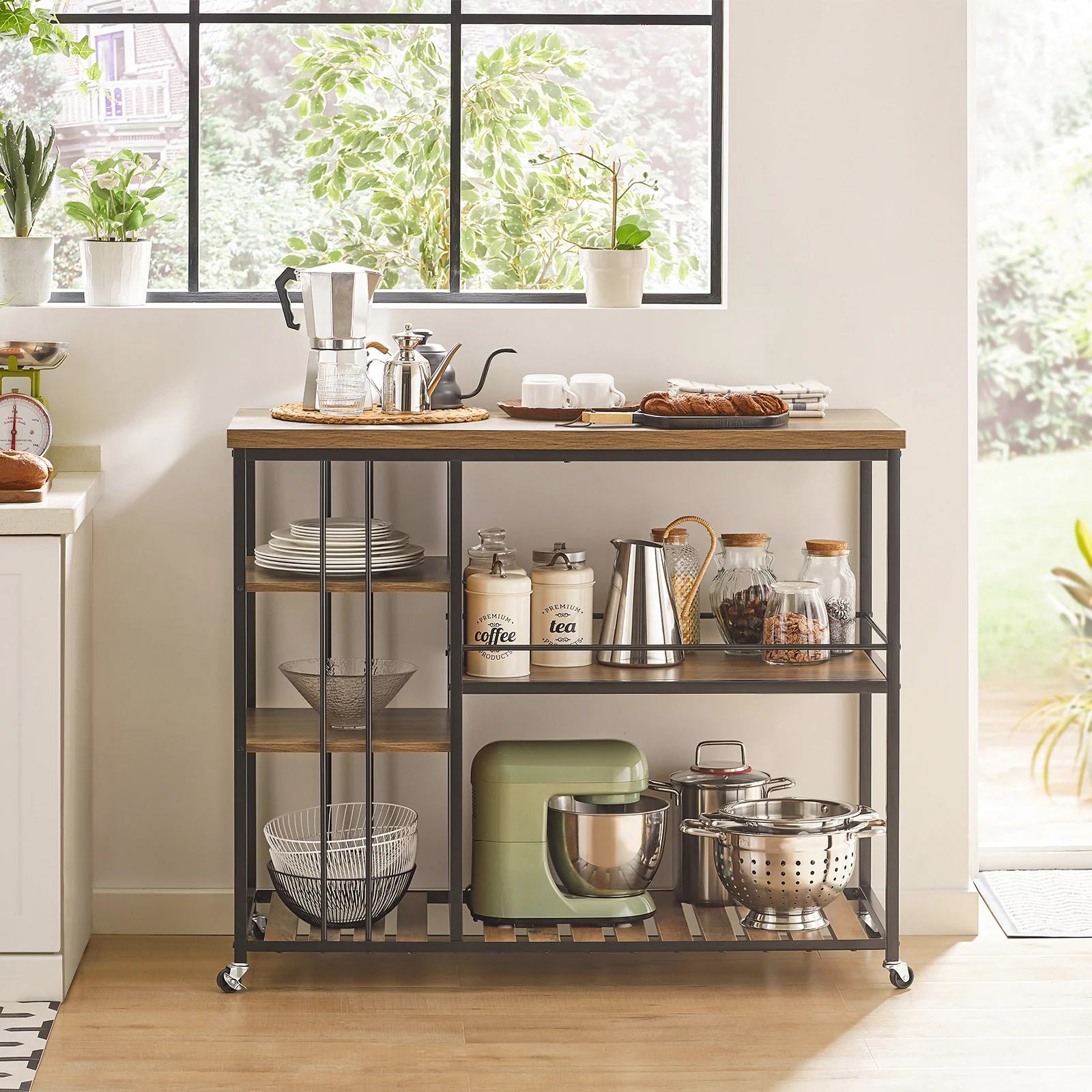 Stylish and functional, this trolley is perfect for your kitchen, dining room, living room and other places that need extra organization.